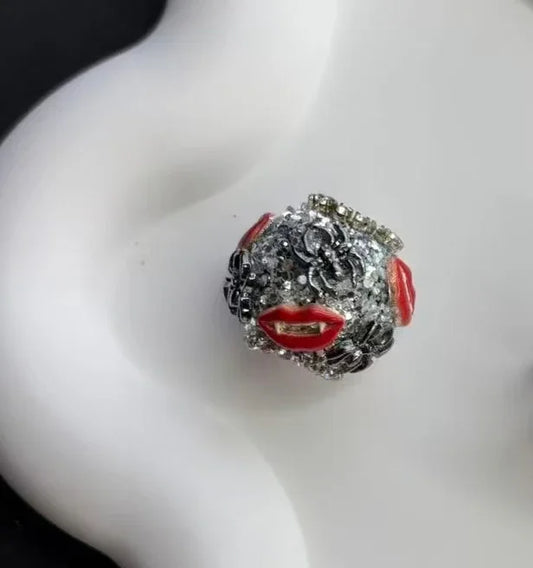 Halloween Intricate Metal Spider Blood-red Lips Beads