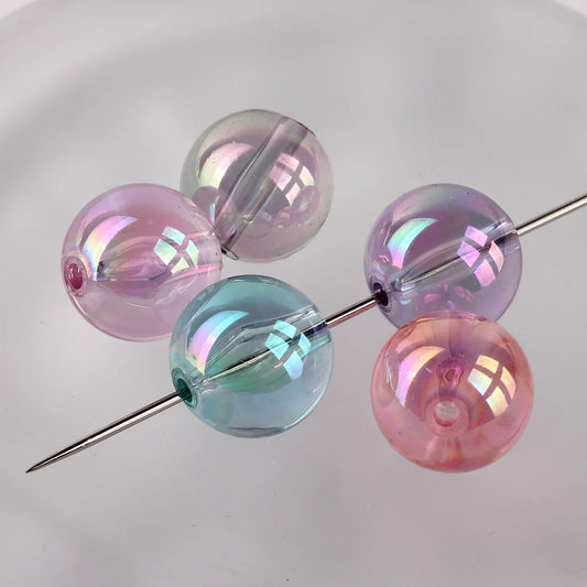 16MM Transparent Colored Plated Dazzling Straight Hole Round Beads Acrylic Beads