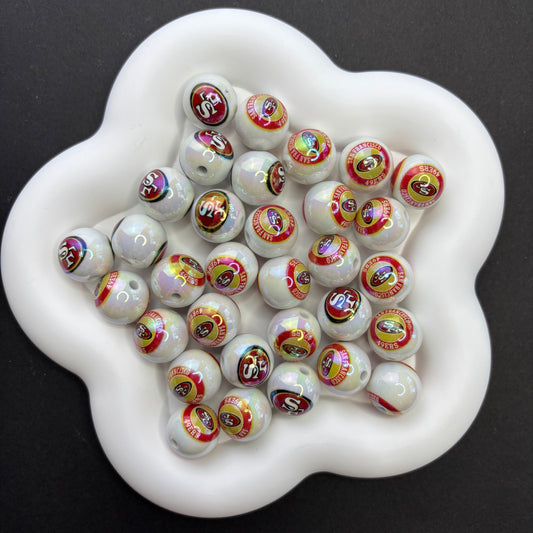 16MM NFL Electroplated Solid Color Printed American Football Team Round Beads