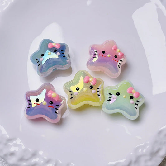 Cartoon Hand-painted Luminous Five-pointed Star KT Cat Bow Beaded