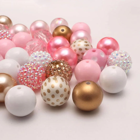 48pcs Pink Gold Printing Point 20MM Acrylic Beads DIY Mixed Color Mixed Bead Combination