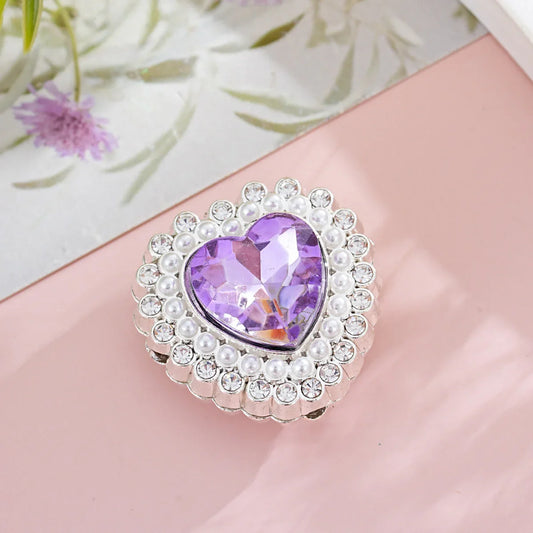 Diamond-encrusted colorful double-sided alloy love heart-shaped beads