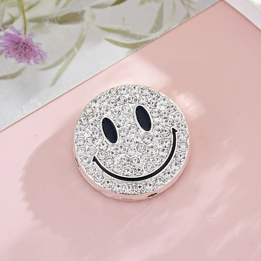 Diamond-encrusted Smiley Face Straight-hole Beads