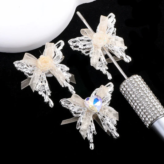 Diamond-encrusted Butterfly Metal Straight-hole Beads