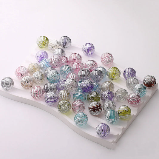 16mm Acrylic Transparent Color Silver-plated Lines Round Beads