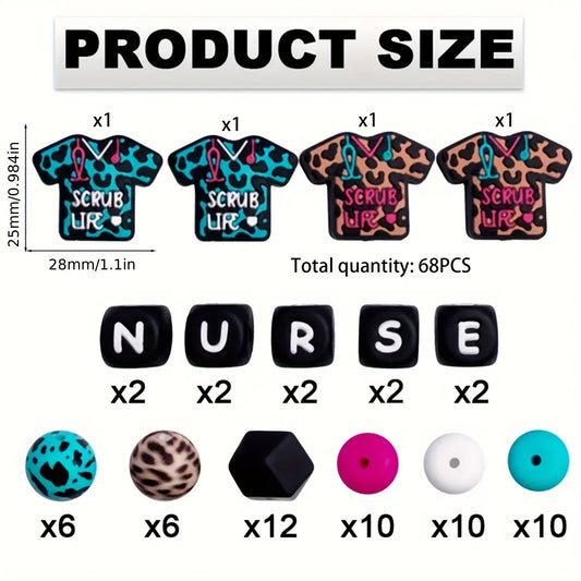 68pcs Printed Nurse Uniform Silicone Bead Set