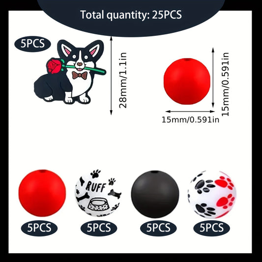 25pcs Creative Puppy-Shaped Silicone Focus Beads + Colored Watermark Beads Set