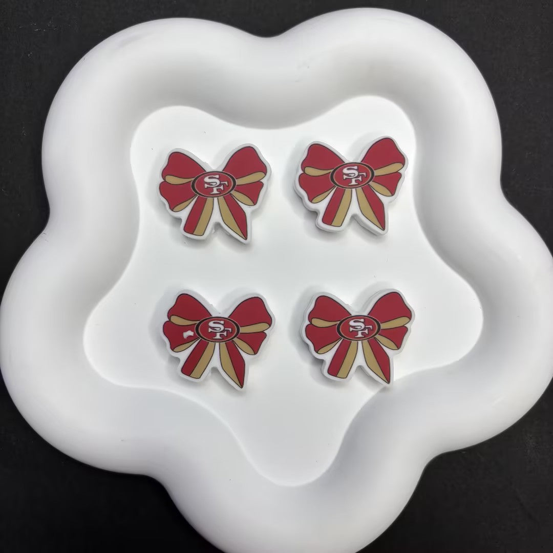 Show off your team spirit with our exclusive NFL-inspired Bow Silicone Beads! Crafted from high-quality, food-grade silicone, these stylish bow-shaped focal beads feature iconic colors and logos from your favorite football teams.