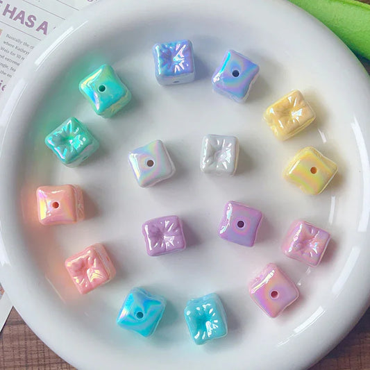 Acrylic Balloon Square Straight Hole Beaded AB Plated Loose Beads