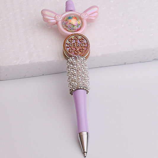 Starry sky bead pen ins gradient three-color ballpoint pen puzzle hand-painted cute grain pen