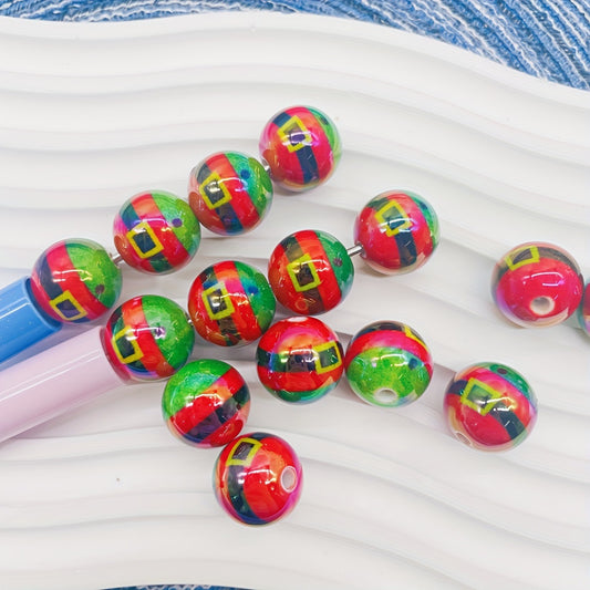 16mm Christmas Series Red and Green Color Block Black Belt Acrylic Straight Hole Beads