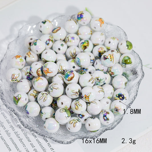 16MM New Acrylic Round Bead Nick Judy White Printed Straight Hole Bead