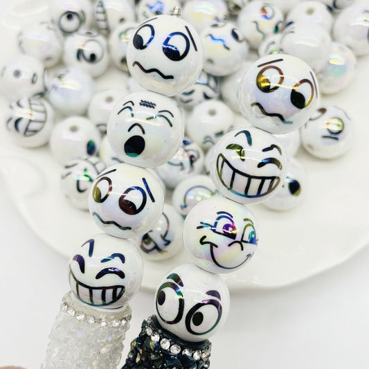 Acrylic Beads with Funny Expressions Smiley Faces Printed Round Beads with Straight Holes