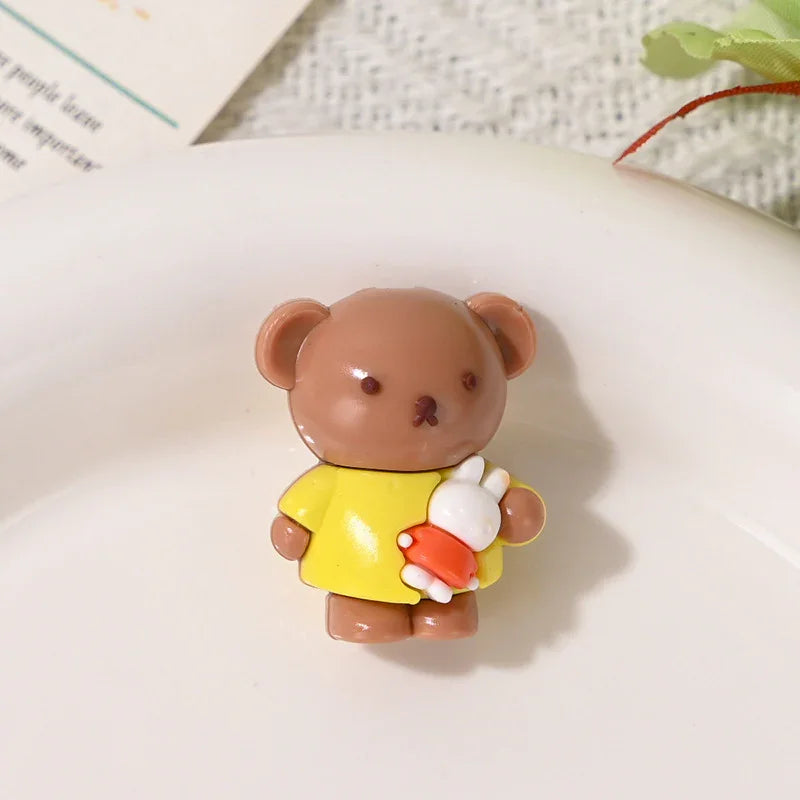 Cartoon Soft Plastic Three-dimensional Brown Bear Wearing Colorful Clothes Hugging A Bunny Through-hole Beads