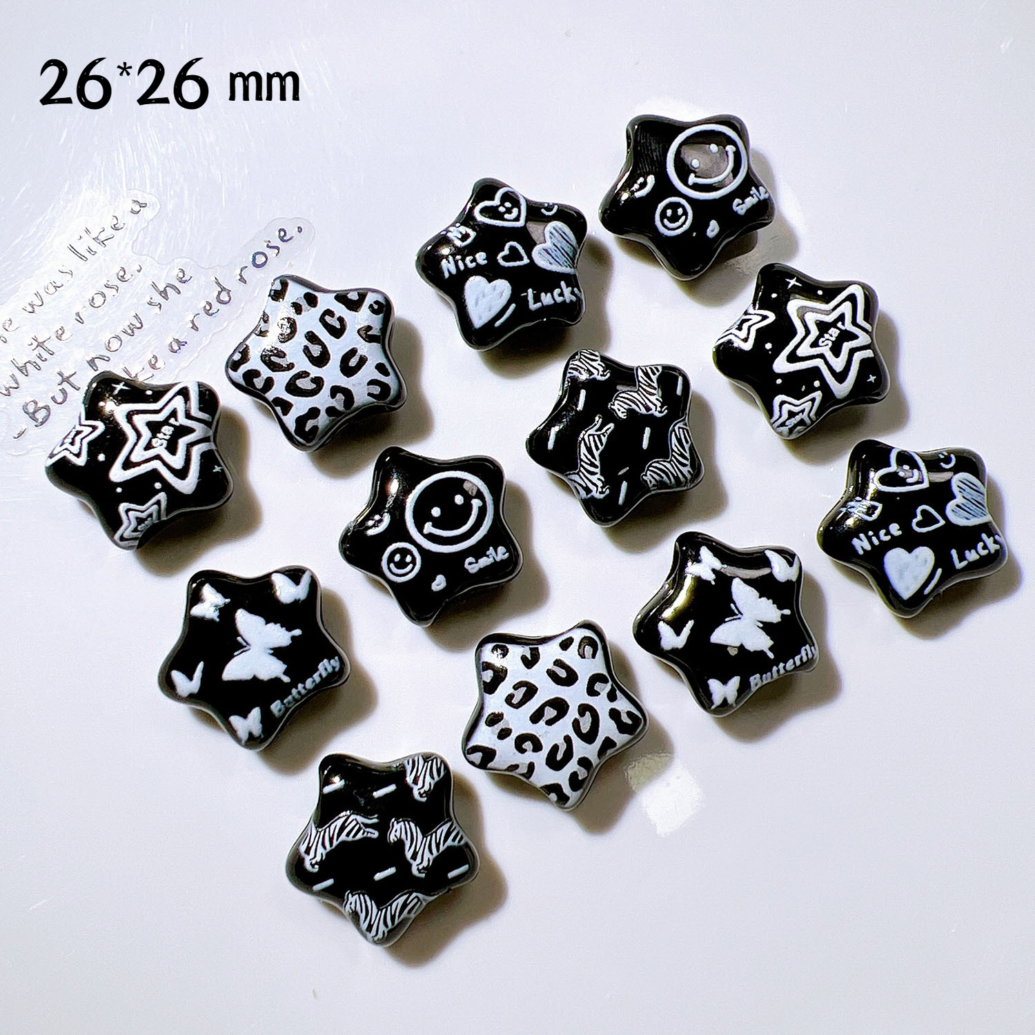 26MM Acrylic Printed Black Five-pointed Star Straight Hole Beads