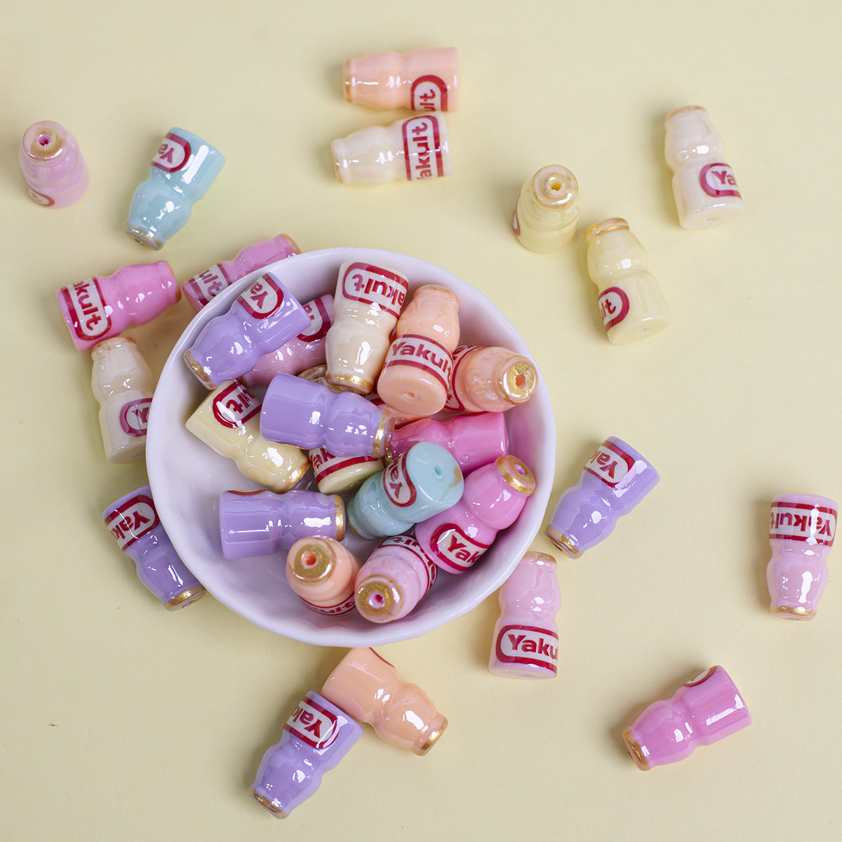 Colorful 3D Mini Beverage Bottle Shaped Acrylic Straight Hole Beads