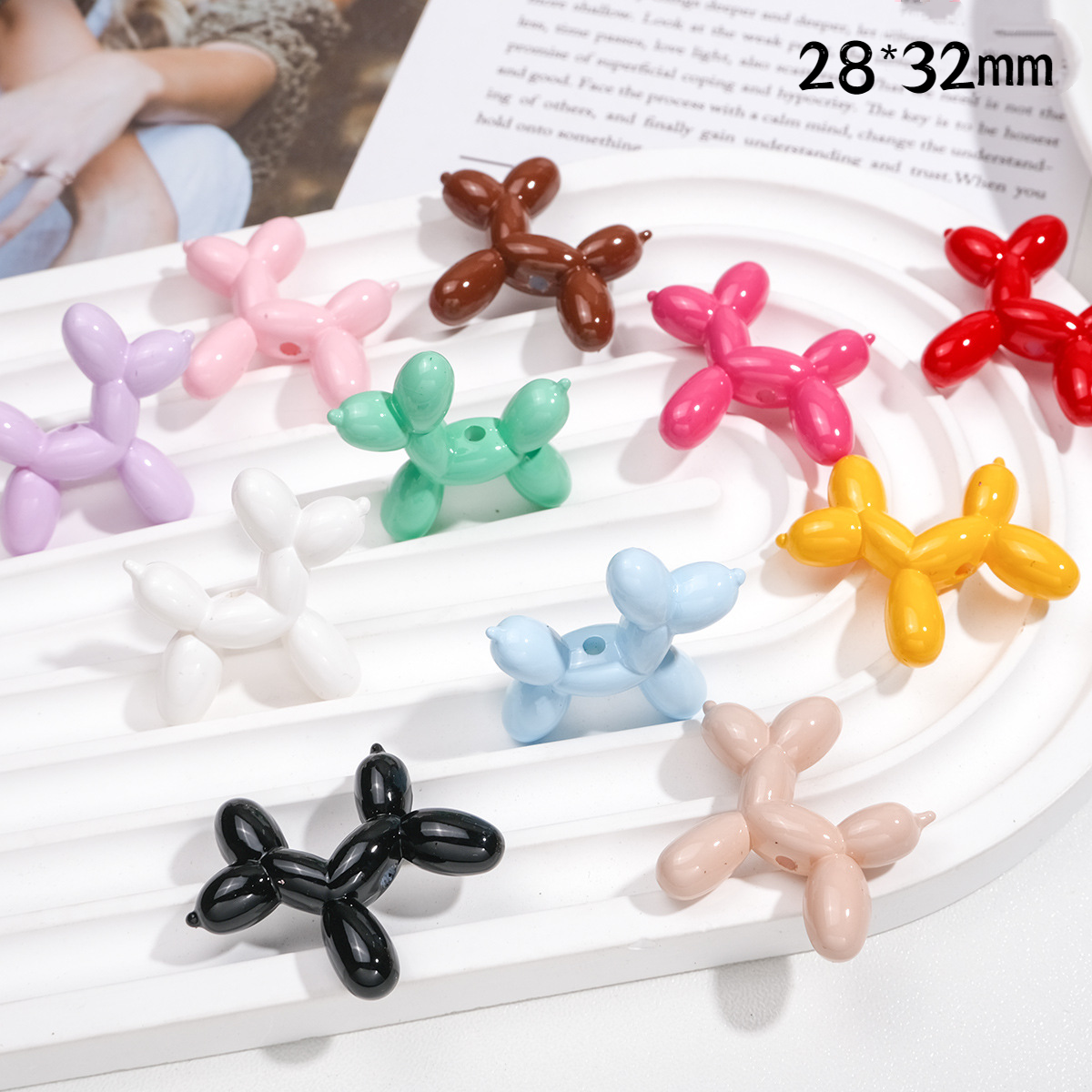 🎁 Colorful Painted Glossy Balloon Dog Acrylic Straight Hole Beads (100% off)